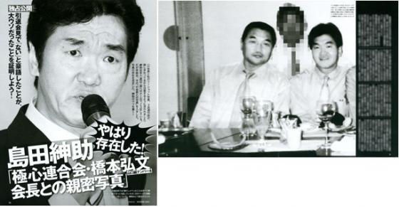 同誌は、紳助さんが8月23日の引退会見で「Bさん」と呼んでいた山口組No.4で極心連合会の橋本弘文会長(64)とのツーショット写真を先月掲載している。